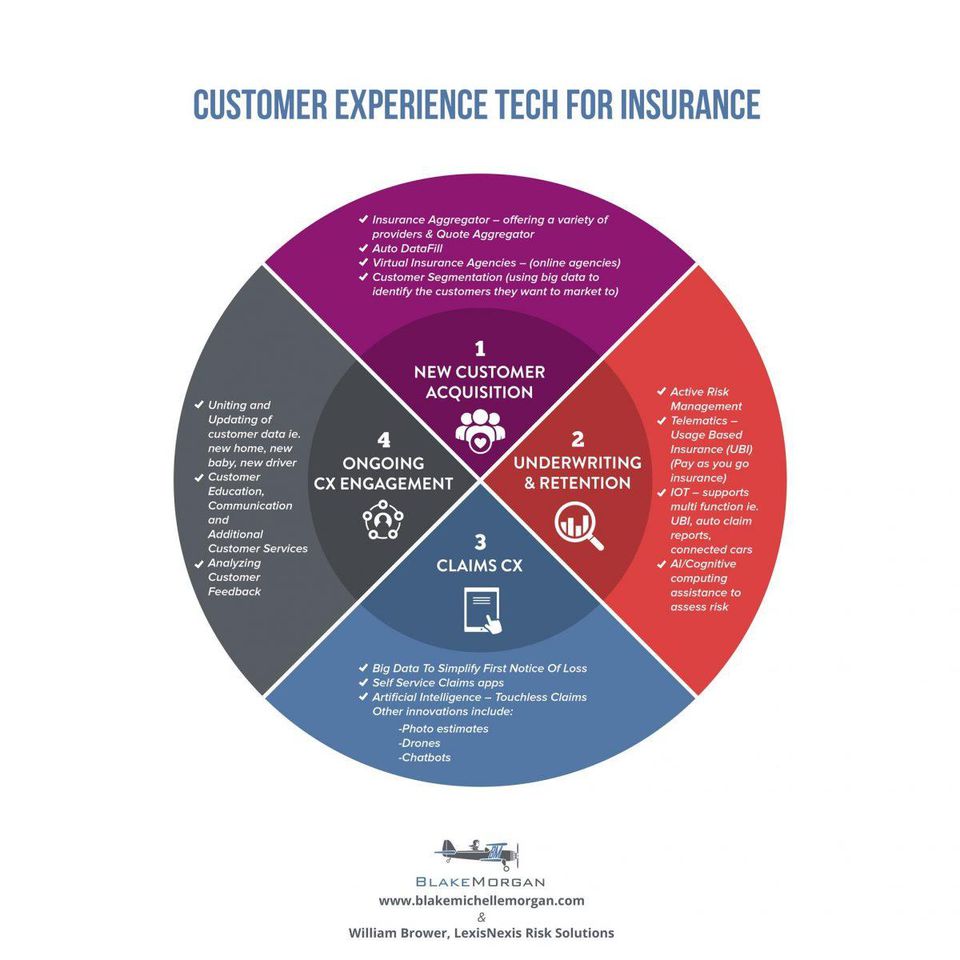 As Brower says, there are multiple touch points like attracting a new customer and underwriting the risk, effectively handling claims, and maintaining a great long-term relationship with the customer. Companies that excel in all four phases will enjoy a significant competitive advantage for customer growth and profitability. These four phases are echoed in our insurance tech framework.